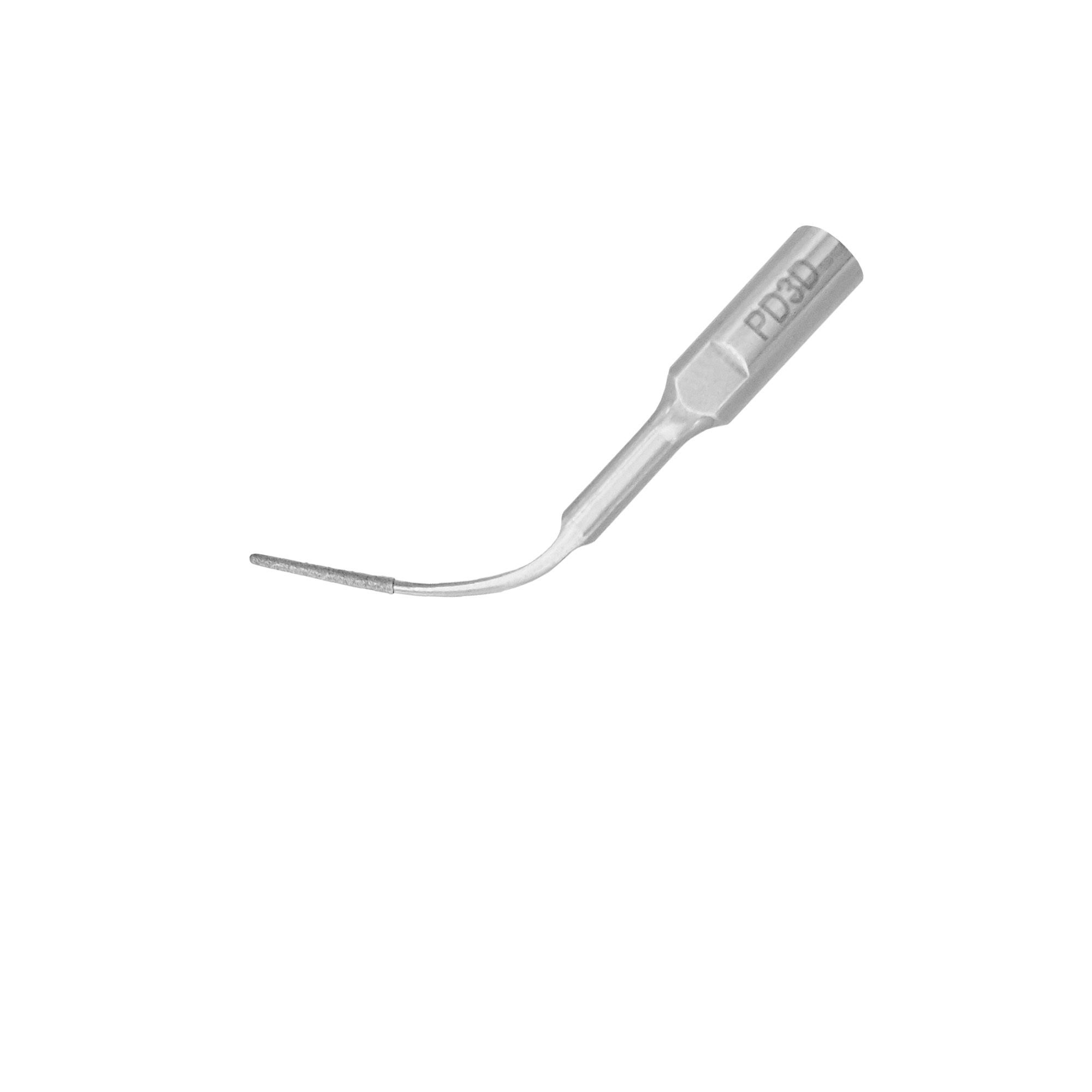 Punta curvada a la izquierda con recubrimiento de diamante para la limpieza de la superficie radicular.